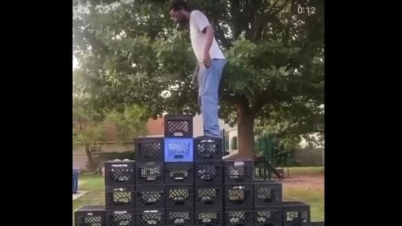 For the past week videos of people attempting to. Milk Crate Challenge. The bloke decided to do his own take on the viral challenge which involves climbing up a makeshift staircase constructed out of plastic milk crates - which it turns out is much harder than it.